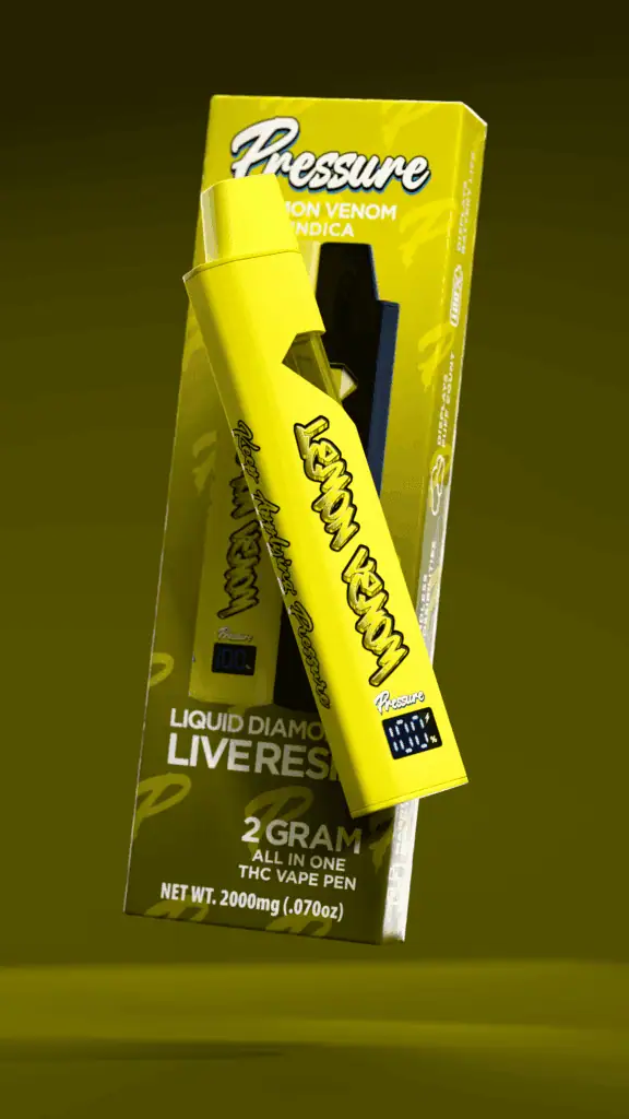 Pressure Lemon Venom vape stands out in the crowded cannabis market thanks to its unique formulation. Infused with both Liquid Diamond and Live Resin, it ensures a smooth and flavorful experience with every puff. Liquid Diamond is created by isolating and refining THC, resulting in a highly potent and pure concentrate that provides a fast-acting effect. Live Resin, on the other hand, is crafted from fresh cannabis plants that are flash-frozen to preserve terpenes and cannabinoids, delivering a rich, aromatic profile.
