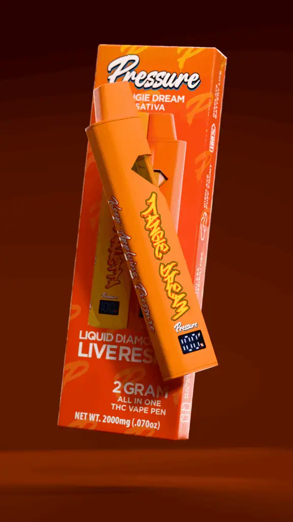 Pressure Tangie Dream Strain is an innovative fusion of two of the highest-quality concentrates: Liquid Diamonds and Live Resin. Liquid Diamonds are the purest form of THC, ensuring every hit delivers an intense potency and clean taste. On the other hand, Live Resin captures the plant’s true essence, preserving a full terpene profile for an incredibly flavorful, aromatic experience. As a result, the combination of these concentrates creates a balanced vape that provides both flavor and strength in one sleek device.
